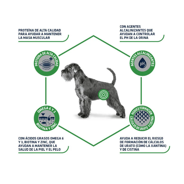 El pienso Urinary Low Purine de Advance es un alimento diétetico para perros adultos con problemas urinarios y también es apto para aquellos perros en tratamiento para la Leishmaniasis. Este pienso para perros está formulado con un contenido restringido de proteínas y fósforo, para ayudar al correcto funcionamiento renal y reducir y prevenir la formación de cálculos de cistina y urato. Las proteínas que componen este pienso, son proteínas de alta calidad seleccionadas para mantener la masa muscular del animal. Además, contiene ácidos grasos cómo Omega 6 y 3, biotina y Zinc, que ayudan a mantener la salud de la piel y el pelo.