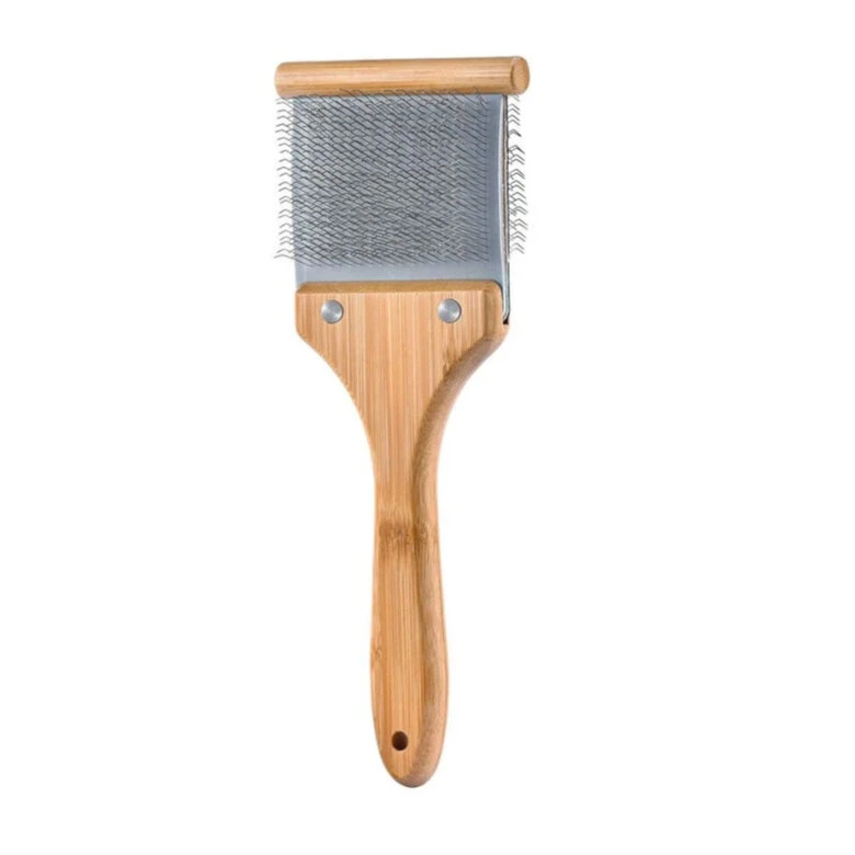 Con este accesorio podrás deslanar el pelaje, ya que te ayuda a retirar la capa superior del pelo dejando al descubierto la subcapa de pelo nuevo, brindando así un cepillado que consigue recuperar el brillo en el manto de tu perro. Posee un mango ergonómico para una mayor sujeción al usarlo y está hecho de bambú, con propiedades antibacterianas para mantener la buena higiene.