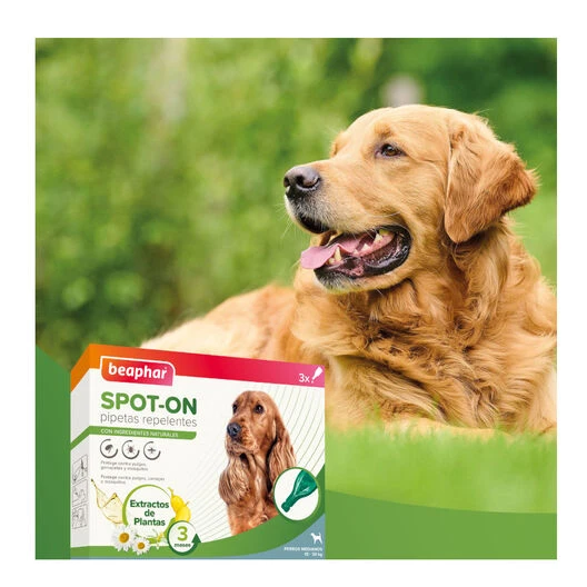 Las pipetas repelentes para perros de Beaphar repelen parásitos como pulgas, garrapatas y mosquitos, además previene la dermatitis causada por las pulgas y es adecuado para aplicar cada 4 semanas, este producto tiene extractos de margosa (también conocida como Neem) y piretro que son conocidos por sus propiedades insecticidas.