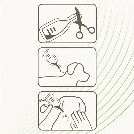 - Aplica el contenido en el cuello detrás de las orejas donde el perro no pueda lamerse ni otros puedan hacerlo.