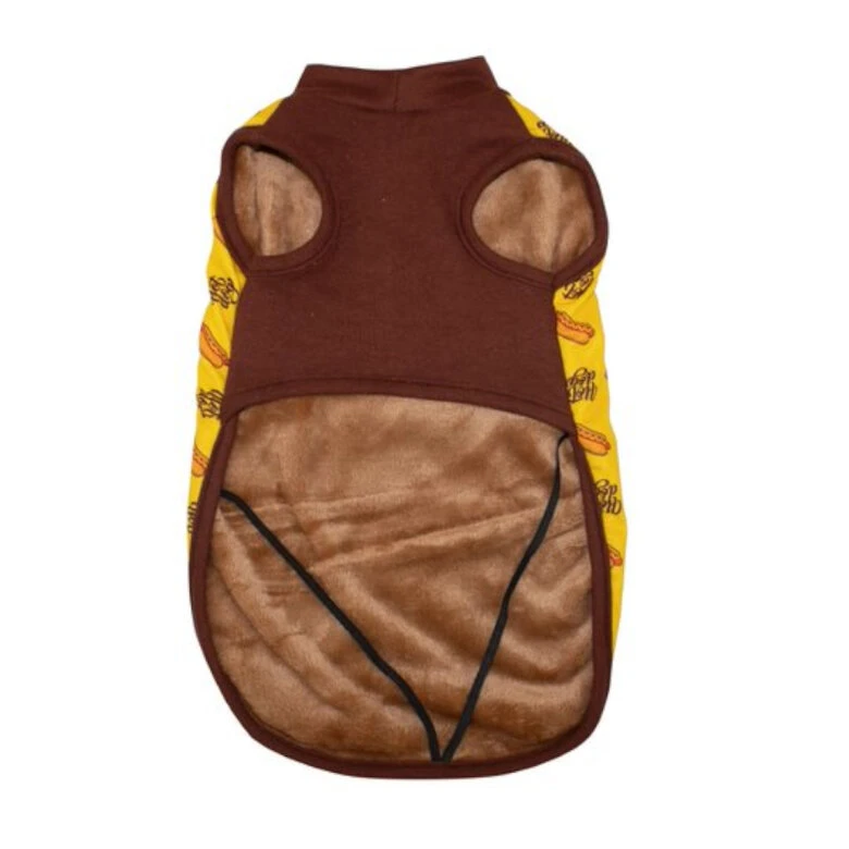 Esta sudadera para perros de Outech tiene un precioso estampado de hot dogs en una base de color amarillo para que resalte un montón. Tu mascota se verá muy bien con este abrigo y lo ayudará a mantener el calor en aquellos días frescos.