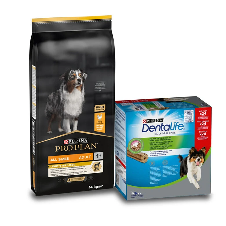 - Saco de 14 kg de Pro Plan Adult Optiweight All Size Pollo – Cómpralo individualmente aquí.