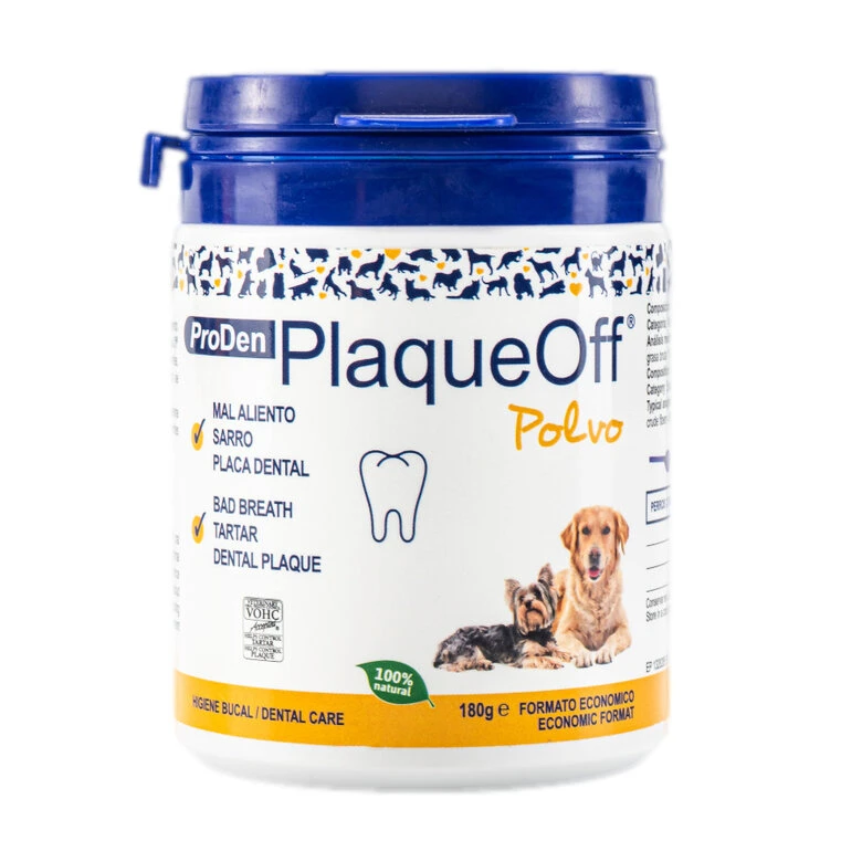 El polvo antisarro para mascotas de PlaqueOff es un producto elaborado de manera natural basando su fórmula en algas marinas que promueven una excelente higiene dental para tu mascota. Actúa de manera sistémica desde el interior. Su principio activo es secretado junto con la saliva para atacar las bacterias existentes en la cavidad bucal.