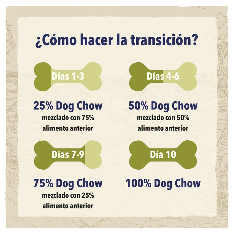- Introduce Dog Chow Adult Sensitive Salmón gradualmente durante 7 días.