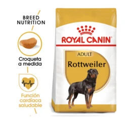 Royal Canin Rottweiler Adult es un alimento de alta gama específico para perros de esta raza a partir de los 18 meses de edad ya que tanto su composición como la forma y tamaño de su croqueta están especialmente adaptados sus necesidades nutricionales específicas.