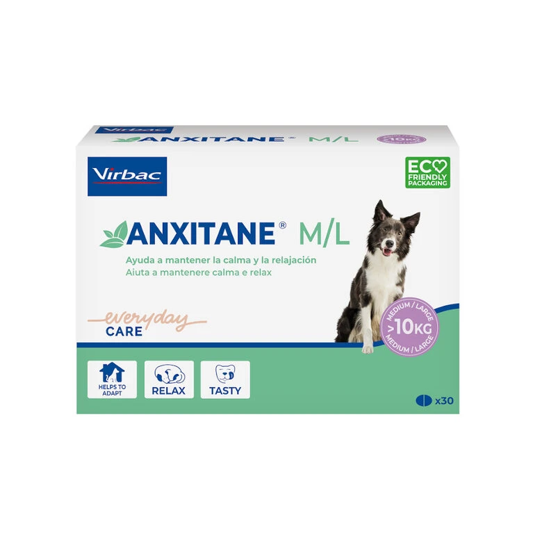 Los comprimidos naturales relajantes para mascotas Virbac Anxitane son un útil remedio elaborado a base de té verde para luchar contra el estrés y el miedo de perros y gatos y conseguir que se calmen en momentos de crisis y angustia. Gracias a ellos podrás olvidarte de las conductas nerviosas de tu peludo amigo cuando ocurre algo que les incomoda o asusta.
