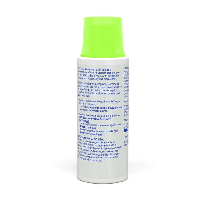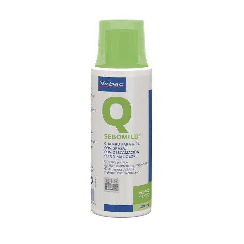 El champú Virbac Sebomild es perfecto para que tu perro o gato puede eliminar la grasa de su pelaje, la descamación, las costras, y con ello, los malos olores que se producen por estos problemas dermatológicos.